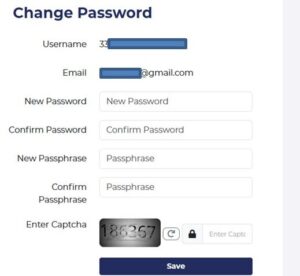 Masukkan ulang kata sandi baru untuk konfirmasi, selesaikan captcha, lalu klik Simpan.